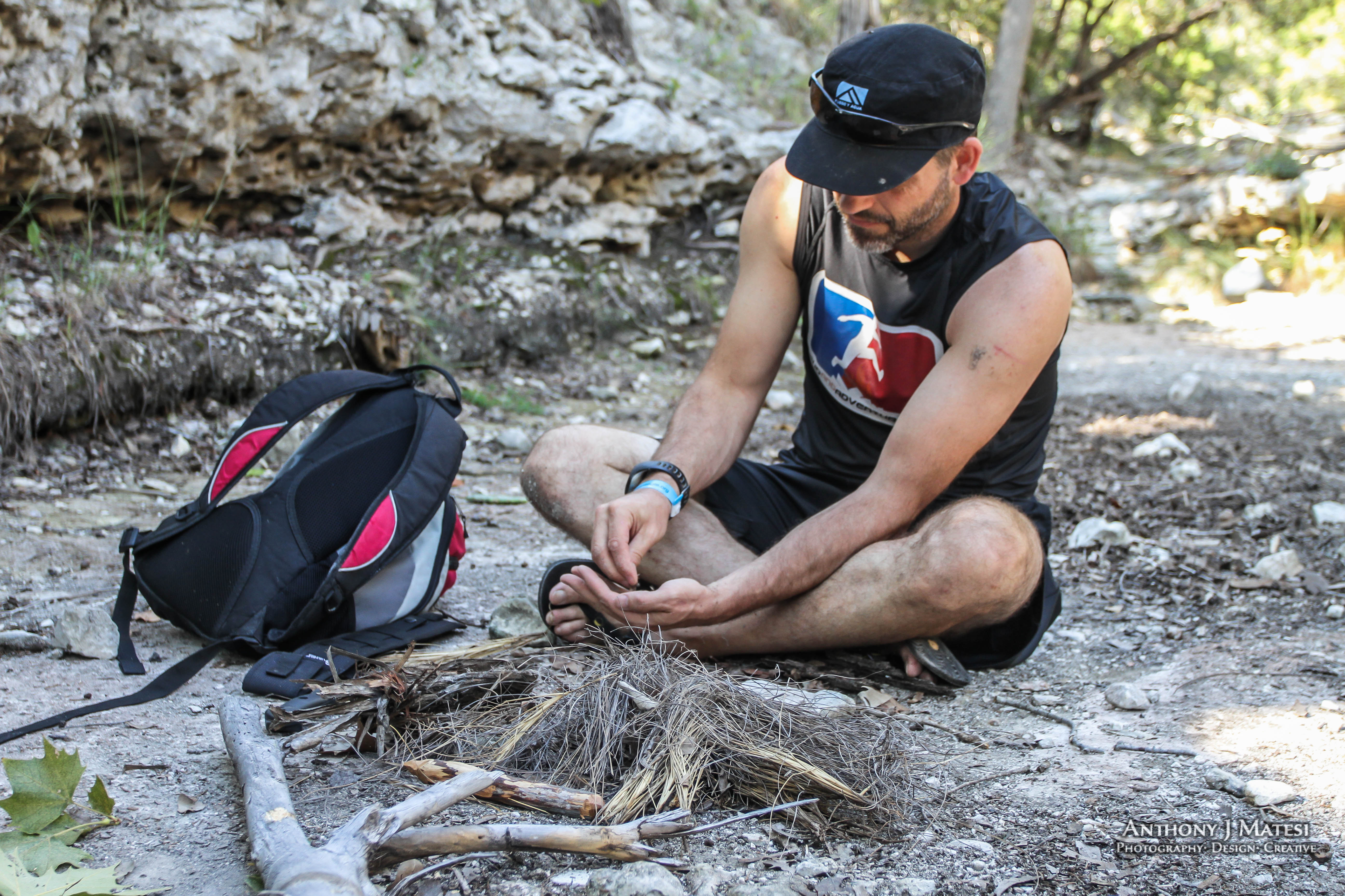 We spent a couple hours working to perfect our bow drill techniques. I don’t recall anyone successfully making fire but there was a lot of smoke. I spent a lot of time trying to find the best materials. From all my studies I knew juniper and sotol stalks were what I should be looking for. I made a solid bow from a juniper branch I found and some paracord. I found that it is really important to have an evenly smooth and cylindrical spindle to achieve the right friction and speed needed to even generate a subtle hint of smoke. It’s also very helpful to have a good stone with a groove in it to apply the necessary pressure on the spindle. After a lot of frustration and some close successes we decided to head back and get some food and rest before packet pick-up. Even though I hadn’t made fire from the bow drill method yet I wasn’t worried because each attempt brought me closer and provided me with more understanding of what to do and what not to do. In my head I kept thinking, “That spindle is key.”