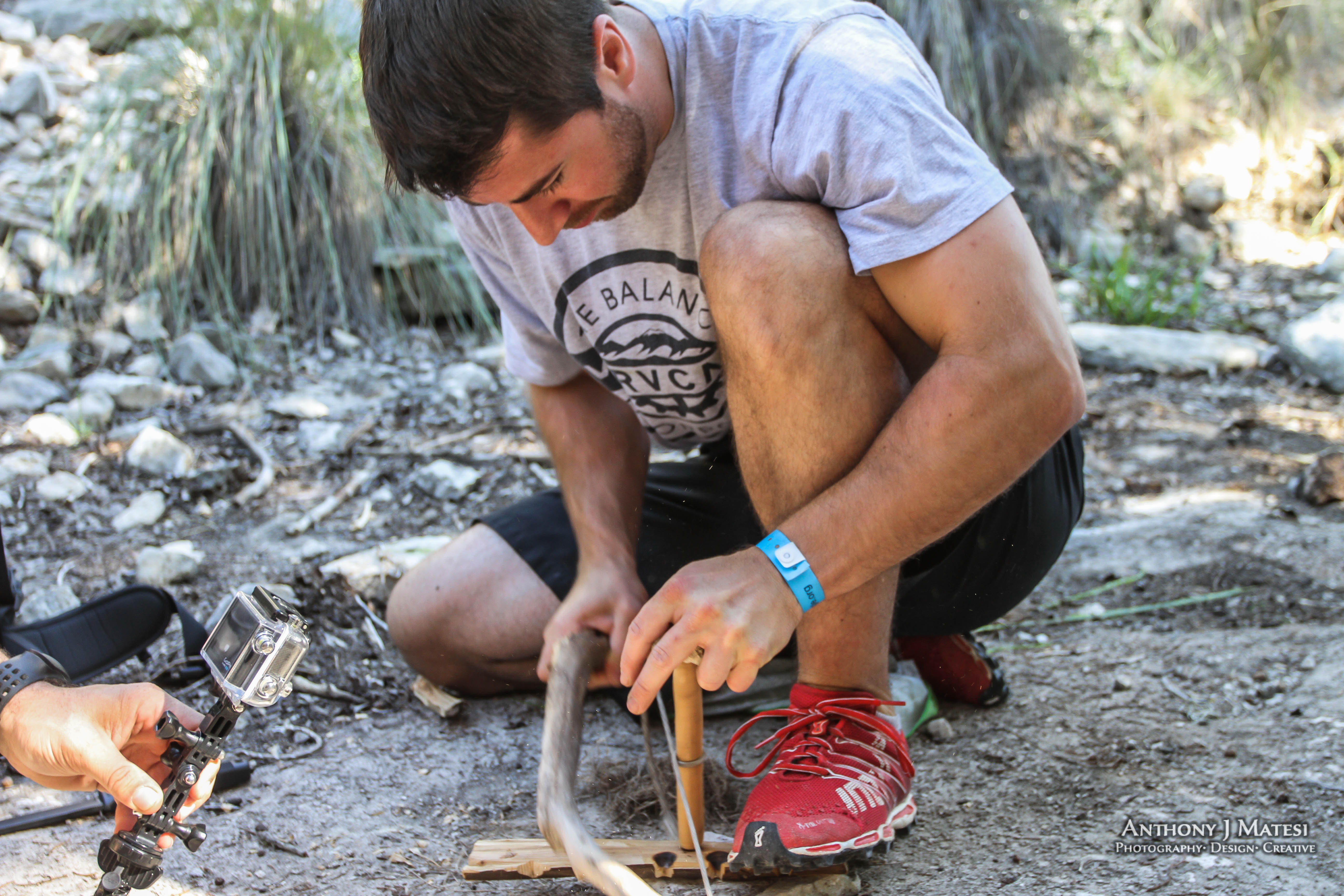 We spent a couple hours working to perfect our bow drill techniques. I don’t recall anyone successfully making fire but there was a lot of smoke. I spent a lot of time trying to find the best materials. From all my studies I knew juniper and sotol stalks were what I should be looking for. I made a solid bow from a juniper branch I found and some paracord. I found that it is really important to have an evenly smooth and cylindrical spindle to achieve the right friction and speed needed to even generate a subtle hint of smoke. It’s also very helpful to have a good stone with a groove in it to apply the necessary pressure on the spindle. After a lot of frustration and some close successes we decided to head back and get some food and rest before packet pick-up. Even though I hadn’t made fire from the bow drill method yet I wasn’t worried because each attempt brought me closer and provided me with more understanding of what to do and what not to do. In my head I kept thinking, “That spindle is key.”