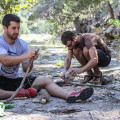 We spent a couple hours working to perfect our bow drill techniques. I don’t recall anyone successfully making fire but there was a lot of smoke. I spent a lot of time trying to find the best materials. From all my studies I knew juniper and sotol stalks were what I should be looking for. I made a solid bow from a juniper branch I found and some paracord. I found that it is really important to have an evenly smooth and cylindrical spindle to achieve the right friction and speed needed to even generate a subtle hint of smoke. It’s also very helpful to have a good stone with a groove in it to apply the necessary pressure on the spindle. After a lot of frustration and some close successes we decided to head back and get some food and rest before packet pick-up. Even though I hadn’t made fire from the bow drill method yet I wasn’t worried because each attempt brought me closer and provided me with more understanding of what to do and what not to do. In my head I kept thinking, “That spindle is key.”
